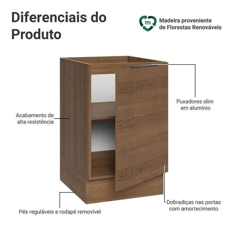Balcão De Cozinha 50cm 1 Porta (sem Tampo) R Stella Madesa Rustic