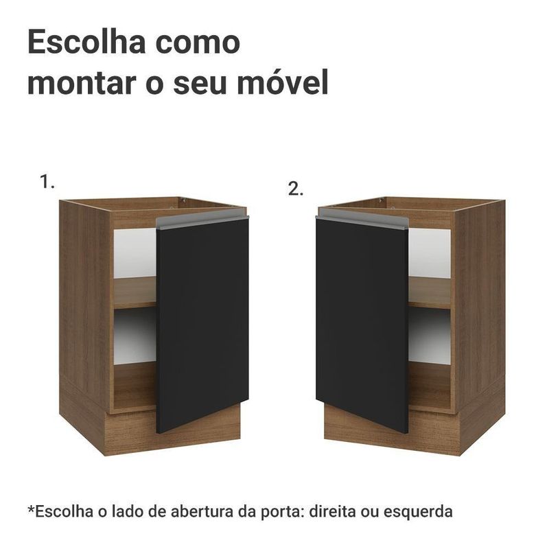 Balcão De Cozinha 50cm 1 Porta (sem Tampo) Rp Glamy Madesa Rustic/preto