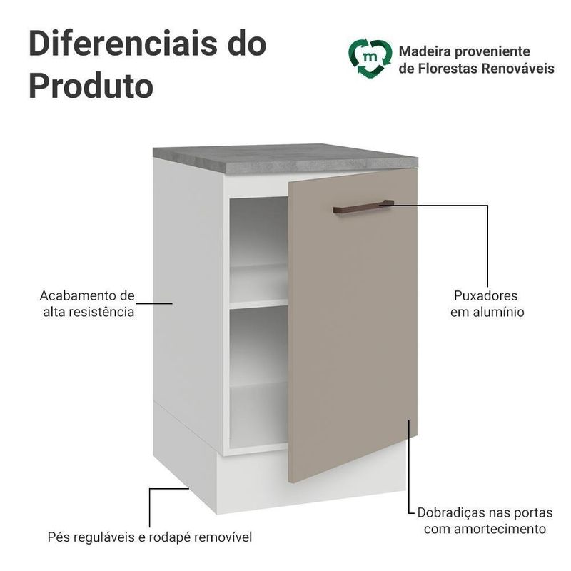 Balcão De Cozinha 50cm 1 Porta Branco/crema Agata Madesa Branco/crema