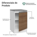 A porta possui dobradiças com amortecimento, garantindo um fechamento suave e silencioso. Possui pés reguláveis e o rodapé removível facilita a limpeza. O espaço interno é ótimo para organizar utensílios, panelas ou produtos de uso frequente.