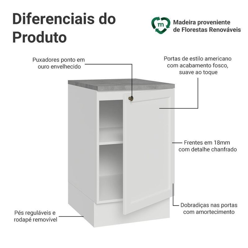 Balcão De Cozinha 50cm 1 Porta Branco Vik Madesa Branco