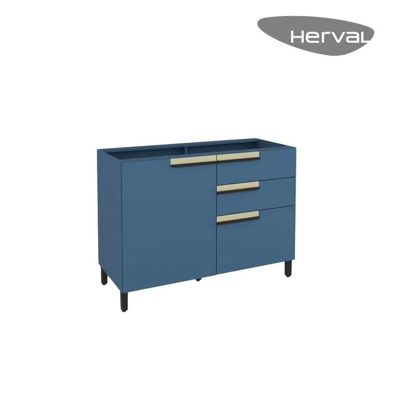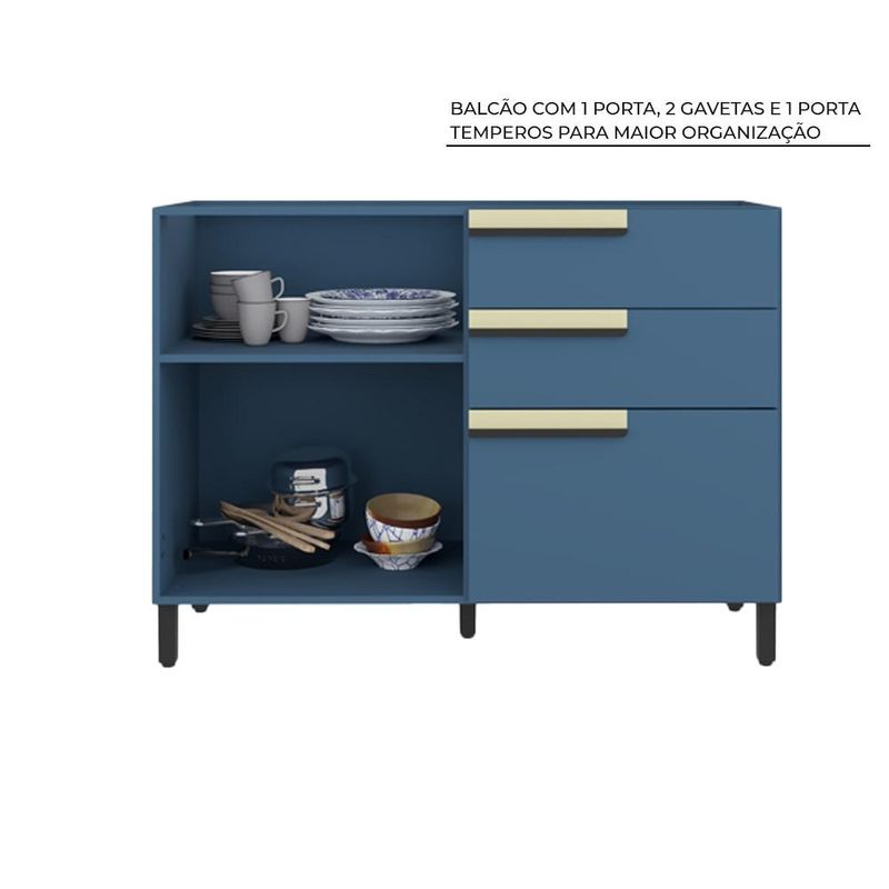 BALCÃO DE COZINHA HERVAL MANHATTAN, MDP, AZUL ORION para ter uma cozinha organizada e de belo visual, deve ser feita uma boa escolha dos móveis que irão compor o ambiente. E o Balcão de Cozinha Herval Manhattan é perfeito para compor seu espaço. Com 1 porta e 3 gavetas esse balcão entrega amplo espaço para que você possa guardar utensílios e mantimentos com facilidade.