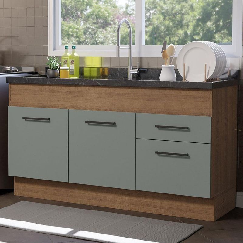 O Balcão de Pia de 120 cm com duas portas e três gavetas da linha Agata da Madesa possibilita o máximo de aproveitamento do espaço interno.