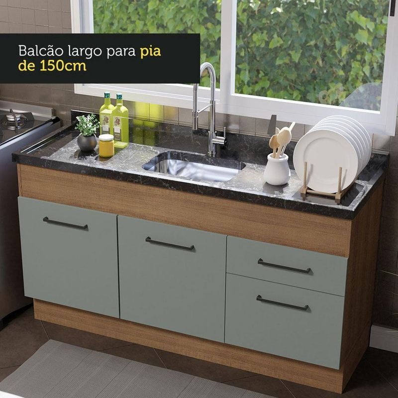 - Um (1) Balcão de Pia com duas (2) portas e três (3) gavetas (Não acompanha tampo).