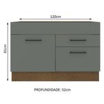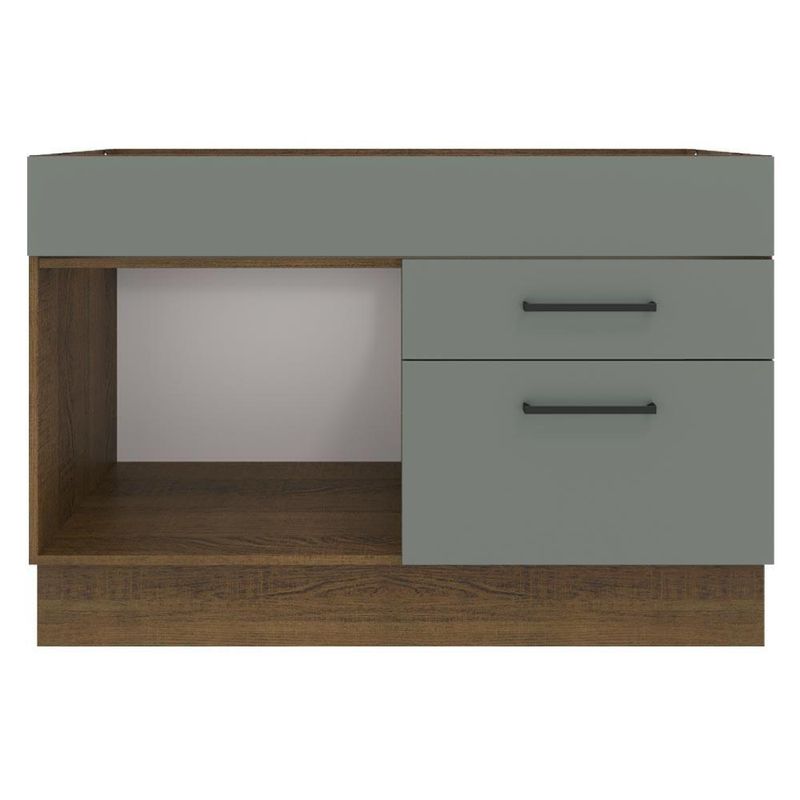 - Um (1) Balcão de 120 cm de largura com uma (1) porta e duas (2) gavetas (Não acompanha tampo).Especificações Técnicas: - Marca: Madesa