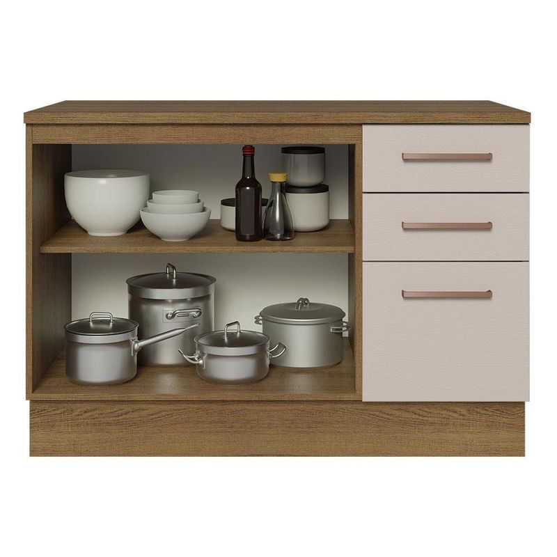 O Balcão de Pia de 120 cm com duas portas e três gavetas da linha Agata da Madesa possibilita o máximo de aproveitamento do espaço interno.