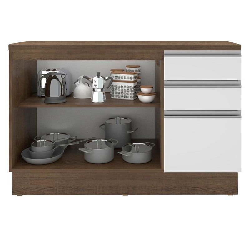 Balcão de Pia Glamy 2 Portas 3 Gavetas Rustic/branco MadesaÉ desenvolvido com materiais de alta qualidade, como puxadores em alumínio e dobradiças metálicas com amortecimento. Conta com duas portas e três gavetas com corrediças telescópicas, sendo uma delas maior.