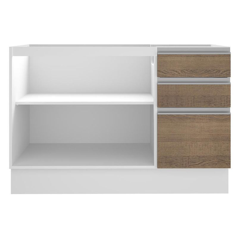 - Estrutura: 1 Balcão com 2 Portas e 3 Gavetas para Pias de 120 cm X 52 cm (Não Acompanha Tampo)