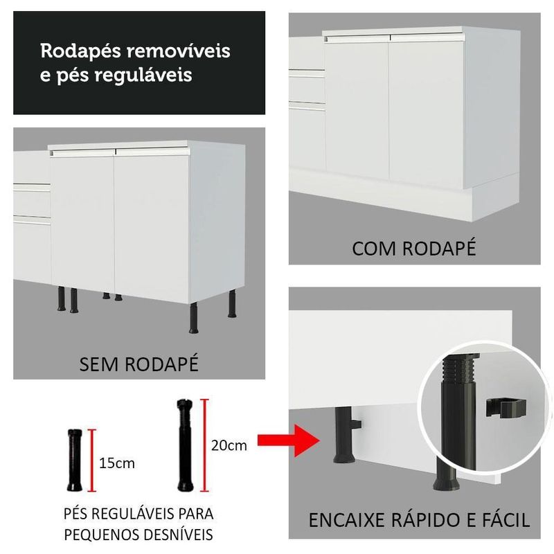 É possível combinar este balcão com outros módulos e cozinhas disponíveis na linha Glamy da Madesa. Entre elas: Vicenza, Safira e Marina.Especificações TécnicasCor: Branco