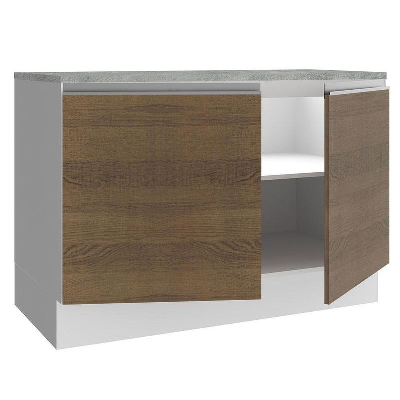 Balcão de Pia Madesa Glamy 120Cm 2 Portas com Tampo Branco RusticO Balcão de Pia Madesa Glamy 2 Portas é o produto ideal para quem procura praticidade e beleza. O design é atual e pensado para se ter o máximo de aproveitamento do espaço interno. Desenvolvido com materiais de alta qualidade como puxadores em alumínio e dobradiças metálicas, possui duas portas e um interno com prateleira e duas divisórias. Assim fica muito mais fácil de organizar panelas, utensílios, louças e produtos de limpeza. Um diferencial deste modelo é que acompanha tampo em MDP em pintura Mood, que também pode ser removido para colocação de pia de 120 cm de largura x 52 cm de profundidade. O acabamento da estrutura é branco e as portas são em amadeirado Rustic. É feito com a Pintura Poliéster de sete camadas da Madesa, um método ecológico e que protege o móvel dos efeitos da água e do calor. A linha de cozinhas Glamy é totalmente modulada. É possível combinar este balcão com outros módulos disponíveis na linha. Inclusive combinando diferentes cores, para você criar a cozinha dos seus sonhos.Especificações:Marca: Madesa