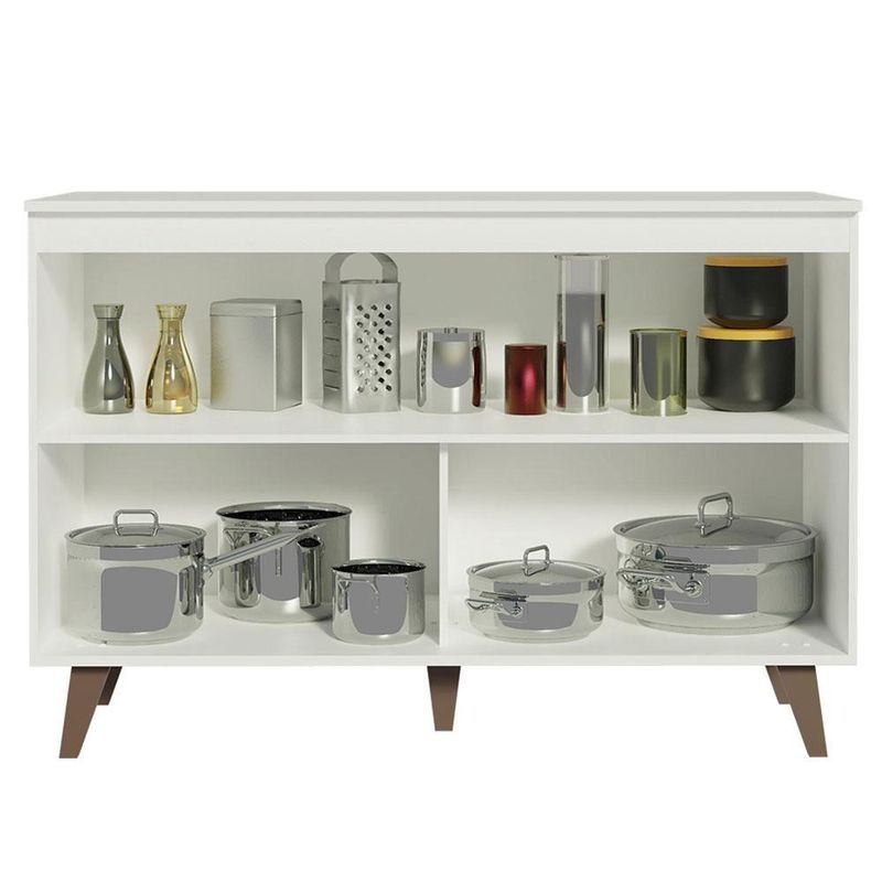 - A parte interna é dividida entre uma prateleira e três nichos, perfeitos para organizar panelas, utensílios, louças e mantimentos.