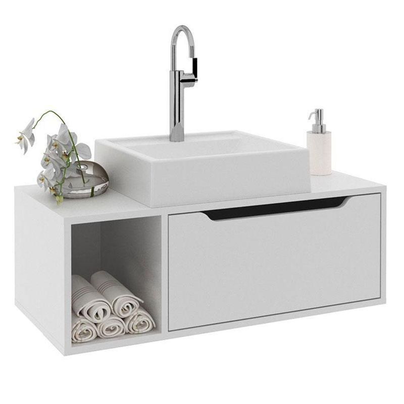 Balcão Gabinete Para Banheiro Suspenso Bn3644 Branco - Tecnomobili