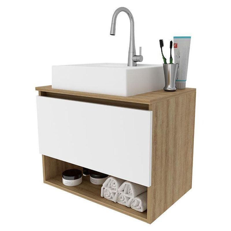 Balcão Gabinete Suspenso Para Banheiro Bn3606 Amêndoa Branco - Tecnomobili