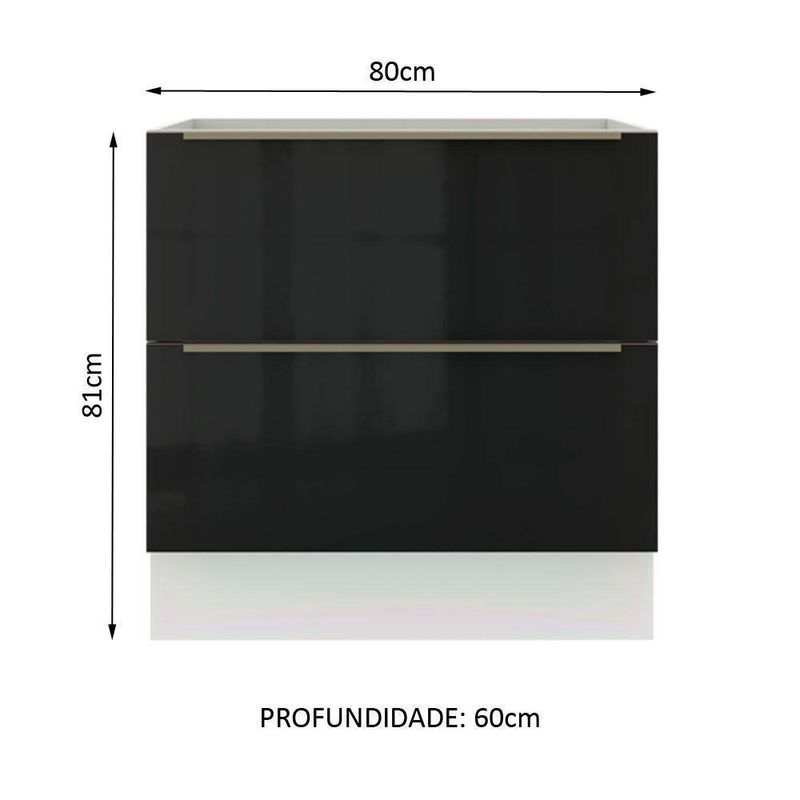 Balcão Madesa Lux 80 Cm 2 Gavetas - Branco/preto