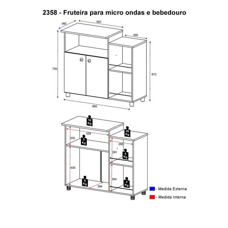 Balcão Multimóveis Para Forno E Microondas Branco Ref.2358 Branco Premium