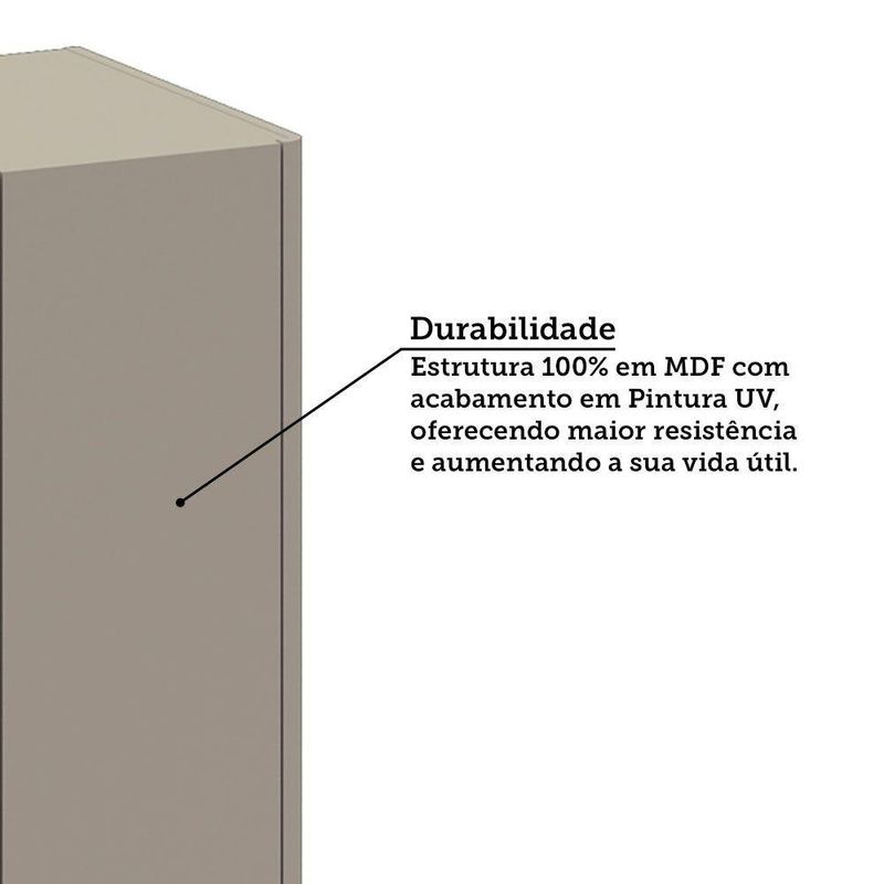 Transforme sua cozinha com um balcao que une praticidade, seguranca e um design moderno! Feito 100 em MDF de alta qualidade, ele possui cantos arredondados que oferecem um visual suave e elegante, alem de garantir maior seguranca ao evitar arestas cortantes. Possui amplo espaco interno para organizar seus utensilios e mantimentos de forma eficiente. Com pes com regulagem de altura permitem ajustar o nivel do armario para uma instalacao perfeita, mesmo em pisos irregulares.