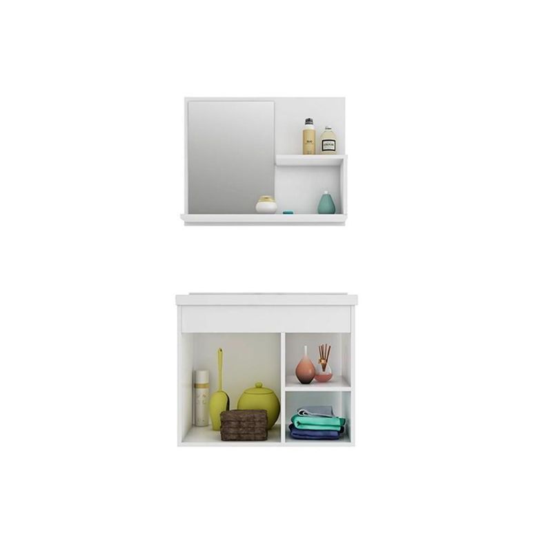 Conjunto de Banheiro Balcão Suspenso Lótus/Bia c/ Cuba 55cm e Armário c/ Espelho Branco - MGM
