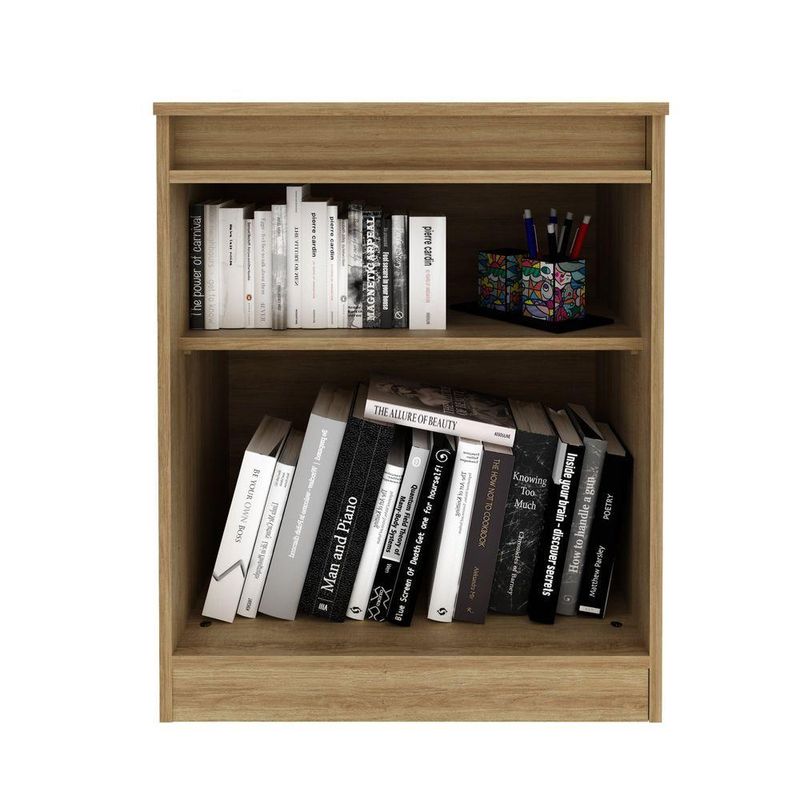 Balcão para Escritório 60cm com 1 Prateleira 2 Portas e Chave Amêndoa -