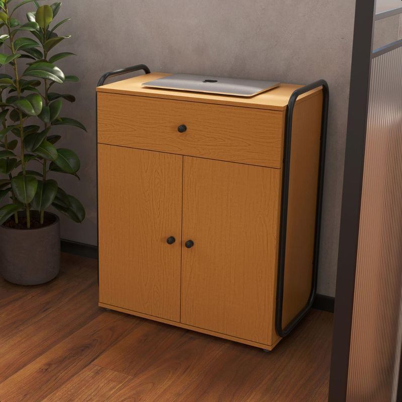 Balcão Para Escritório Organizador 2 Portas 1 Gaveta Criare Canela