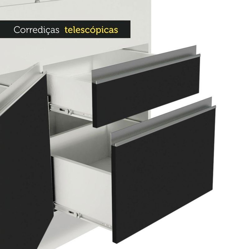 Balcão De Pia Madesa Glamy 150Cm 2 Portas 2 Gavetas sem Tampo E Pia Branco PretoCor: Preto