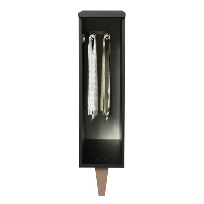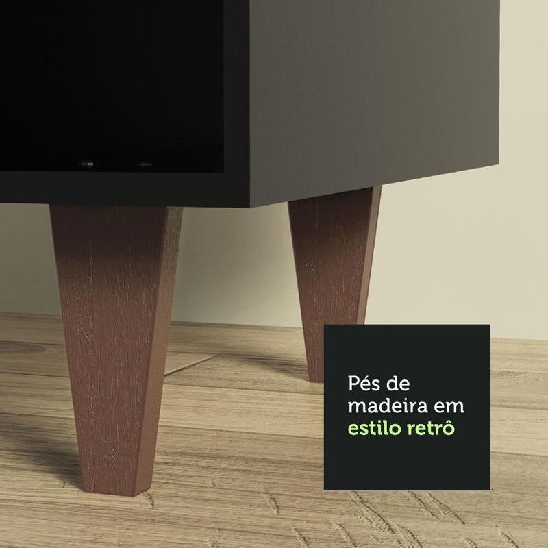 A profundidade é ótima e o móvel possui dois suportes para panos com funcionamento através de uma corrediça metálica. Os pés são em madeira, conferindo melhor sustentação ao móvel.