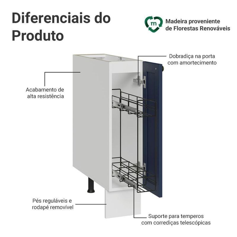 Balcão Porta-temperos 20 Cm 1 Porta (sem Tampo) Branco/azul Vik Madesa Branco/azul