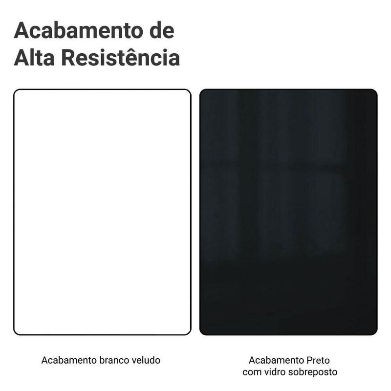 A estrutura em branco combinada com a porta preta cria um contraste marcante. O vidro sobreposto entrega um acabamento moderno, resistente e elegante.