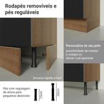 Equipado com um organizador metálico exclusivo, que desliza suavemente através de corrediças de abertura total, garantindo acesso fácil. A porta possui dobradiças com amortecimento, garantindo um fechamento suave e silencioso. Os pés são reguláveis e o rodapé é removível, facilitando a limpeza da parte inferior.