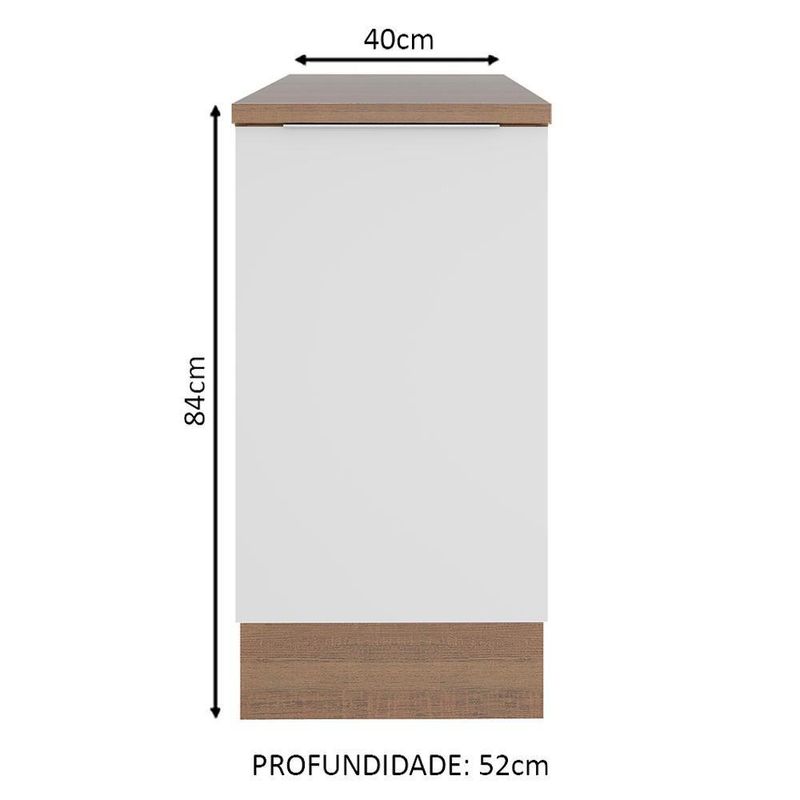 - Um (1) Balcão de 40 cm de largura com uma (1) porta e tampo em pintura Rustic.