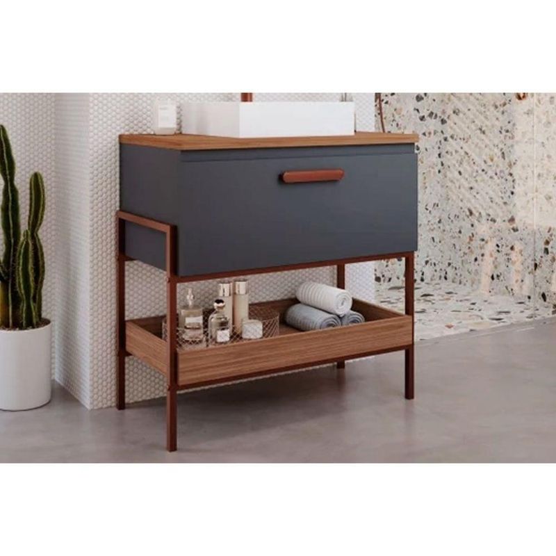 Gabinete de Banheiro Balcão Portinari 1 Porta c/ Cuba 80cm Titanium/Freijo - MGM