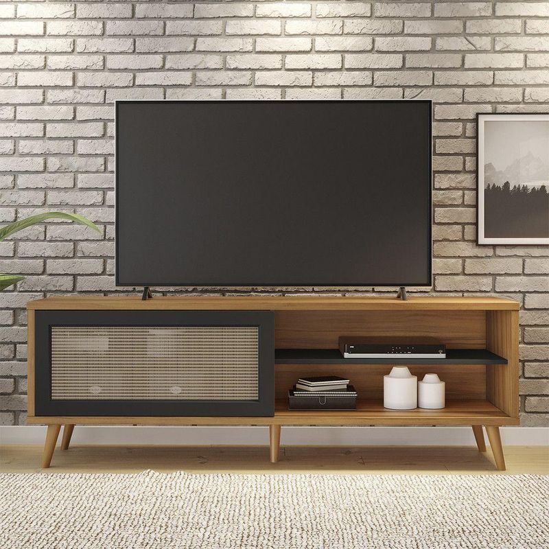 Com um design retrô, a Bancada NT 1175 da Notável Móveis traz toda a elegância para dentro da sua sala, contando com pés palito, porta com moldura MDF e um lindo acabamento em Tela PVC que vai dar um toque especial para o seu ambiente!
