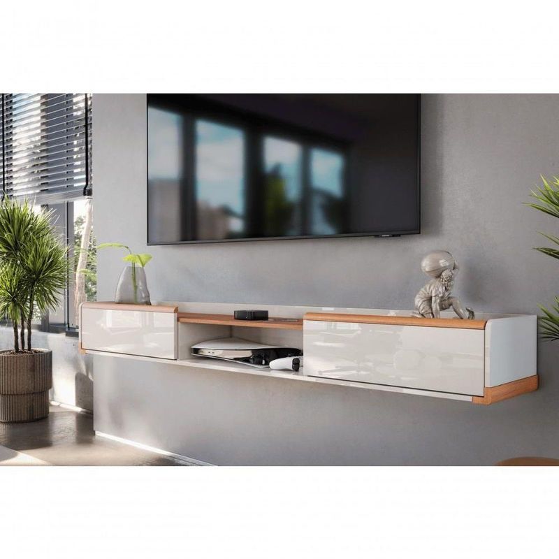 Bancada Suspensa Atlas 2.2 Suporte P/ Decoração E Eletrônicos Off White Perolizado/jequitiba 2 Gavetas