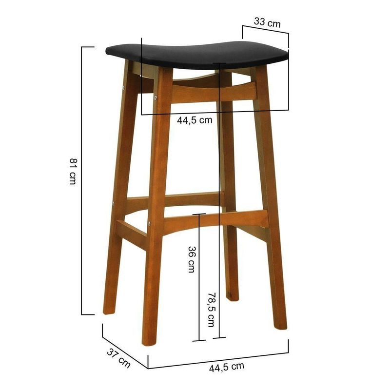 Banco Alto Confort Madeira Maciça Assento Anatômico - Amêndoa Estofado Corano Preto