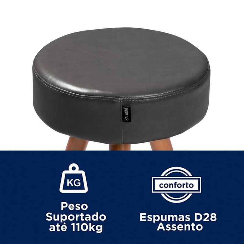 Banco Banqueta Paris Baixa 50cm Couríssimo Preto - Salaone Preto