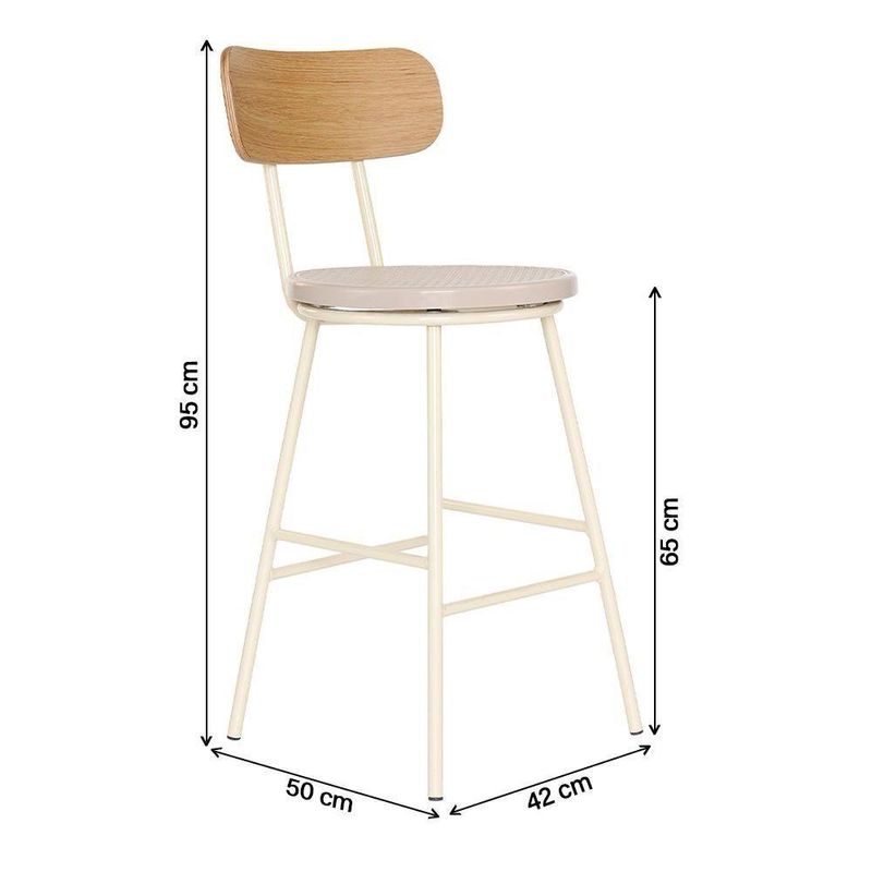 Banco Retro Médio Decorativo Com Encosto Bege Overseas