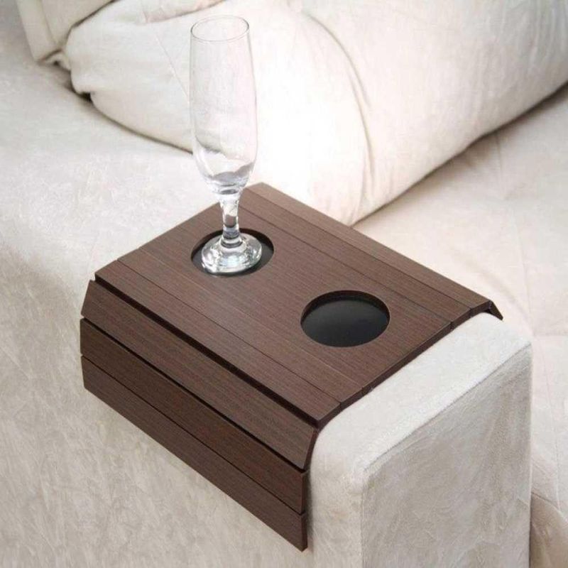 Bandeja Esteira Para Braço De Sofá Cor Imbuia Com Porta Copos