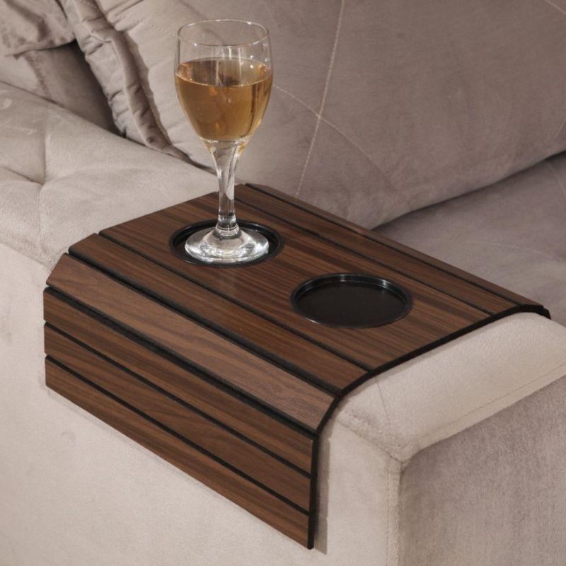 Bandeja Esteira Para Braço De Sofá Cor Mel Com Porta Copos