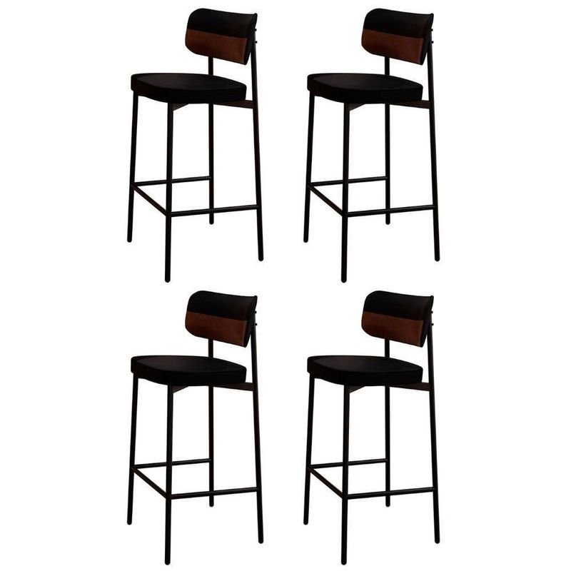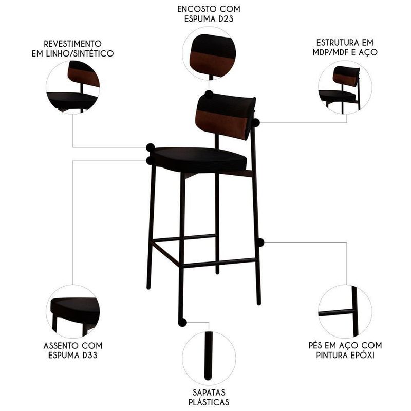 A Banqueta Alta Bar Estofada Kit 4 Ella M25 Linho Preto/Sintético Marrom, da Mpozenato é uma peça de design contemporâneo e funcional, pensada para agregar estilo e conforto a qualquer ambiente.