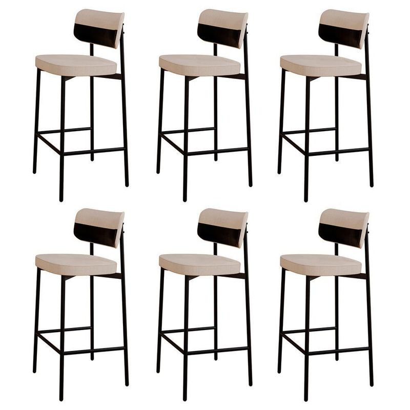 Banqueta Alta Bar Estofada Kit 6 Ella M25 Linho Areia/preto - Mpozenato