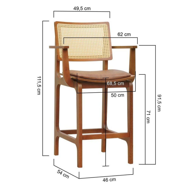 Banqueta Alta Bistrô Gus com Braços Madeira Maciça Encosto Telinha Assento Anatômico As Banquetas Altas Bistrô Gus com Braços são produzidas em madeira de eucalipto, com assento anatômico e encosto em telinha sextavada natural. São recomendadas para bancadas com no mínimo 90cm, altura livre do chão até o início da bancada (Banquetas com braços dificilmente poderão ser acomodadas debaixo da bancada). Pode ser usada em áreas gourmet, cozinhas, churrasqueiras. Outras Informações: - Na limpeza não utilizar produtos químicos e abrasivos, usar apenas um pano umedecido para garantir a maior durabilidade do móvel;