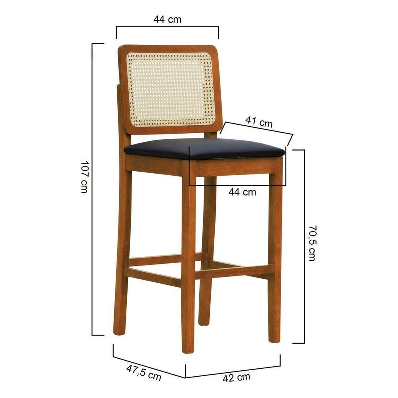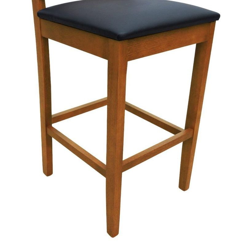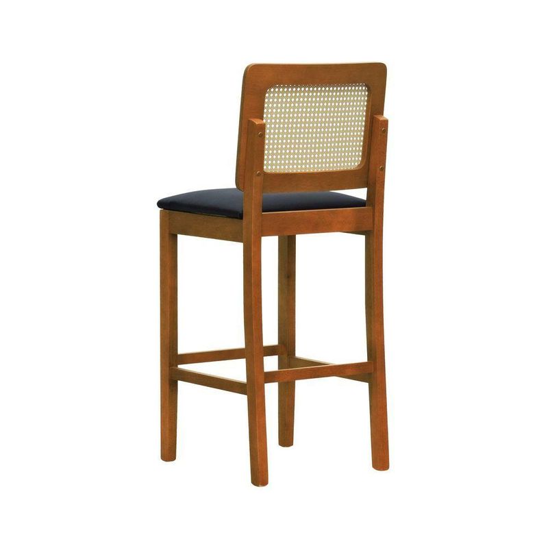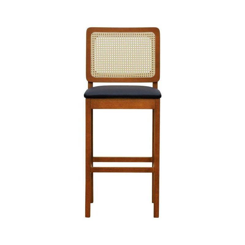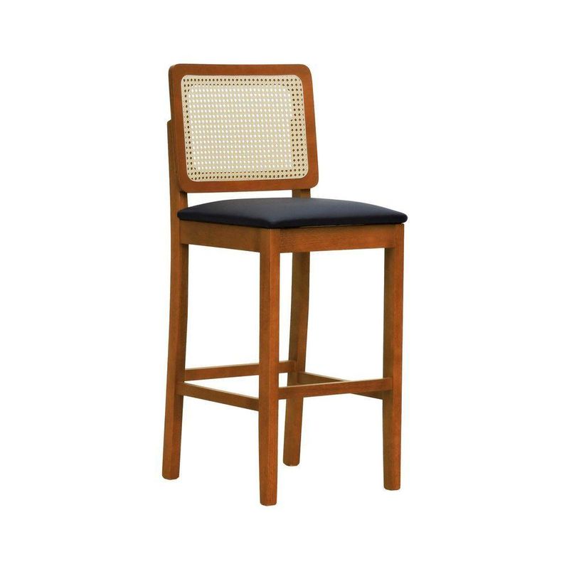 Banqueta Alta Bistrô Lyon Encosto Telinha Natural Madeira Maciça Assento Estofado - Amêndoa Corano Preto