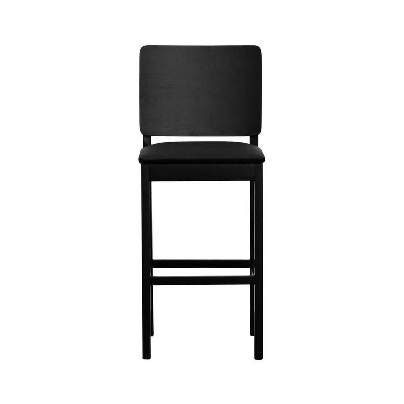 Banqueta Alta Bistrô Quéops Madeira Maciça Encosto Anatômico - Preto Corano Preto