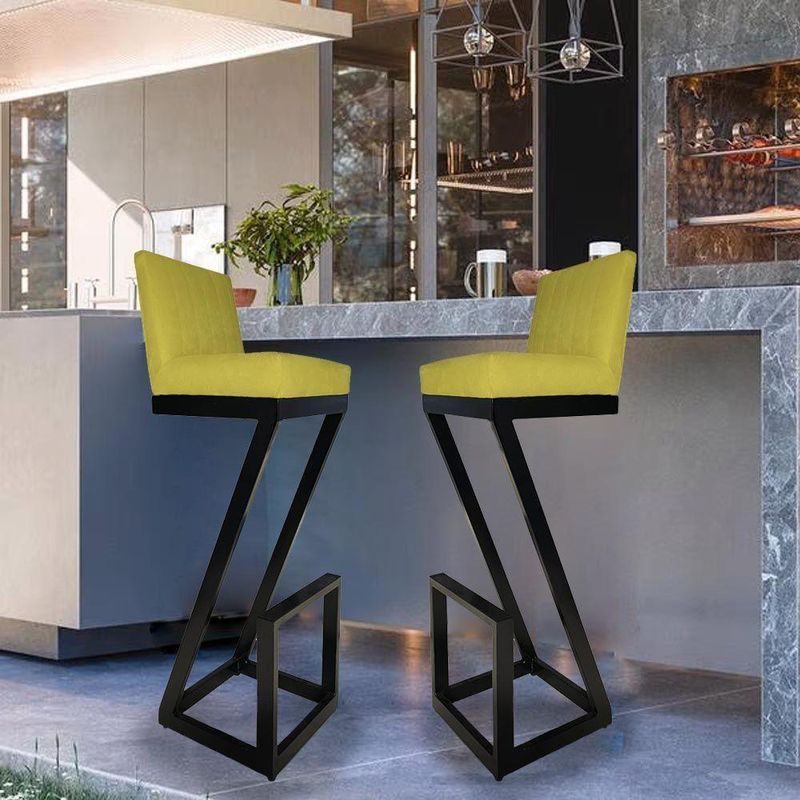 Banqueta Alta Z Base De Ferro Suede Amarelo - D'classe Decor