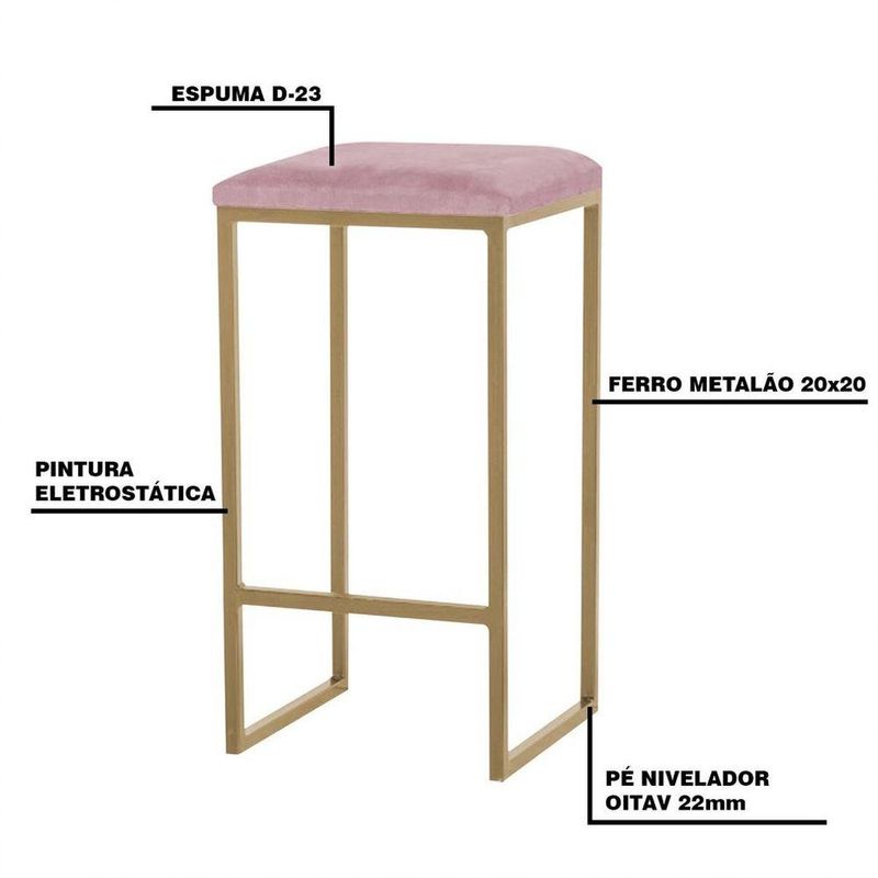 Banqueta Decorativa Billie Base Gold Veludo Rosê - Gran Belo é um modelo super prático e tradicional, podendo ser usado em qualquer ambiente, como cozinha, área gourmet ou até mesmo em restaurantes e bistrôs, dando um ar despojado para o espaço. Aproveite a oportunidade e garanta já a sua!Dimensões do Produto: