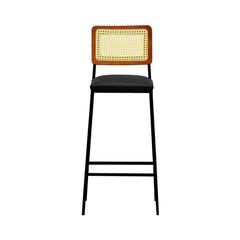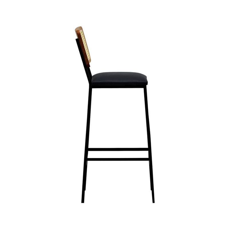 Banqueta Gabi Metal Encosto Anatômico Telinha Natural Assento Estofado - Preto/amêndoa Corano Preto