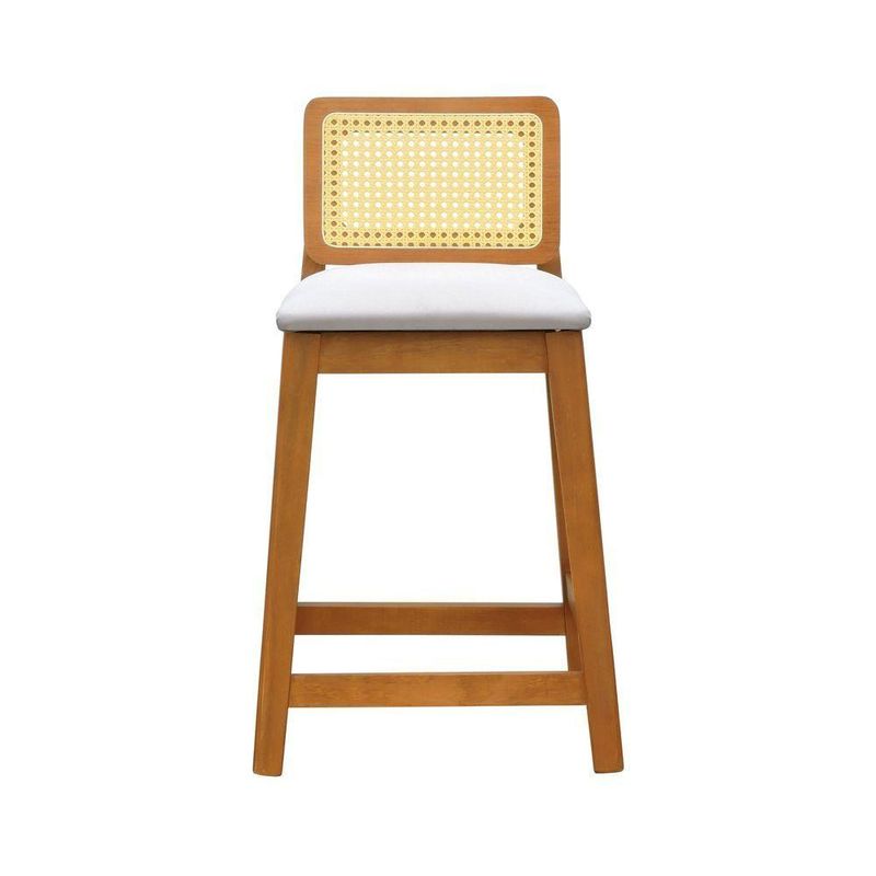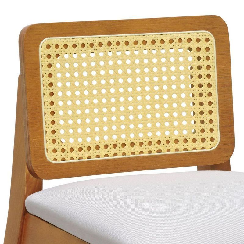 Banqueta Média Gabi Madeira Maciça Telinha Natural - Amêndoa Assento Estofado Linho Bege