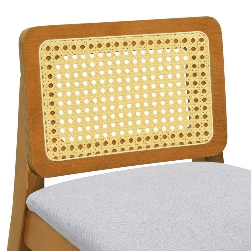 Banqueta Média Gabi Madeira Maciça Telinha Natural - Amêndoa Assento Estofado Linho Bege Mescla Impermeável