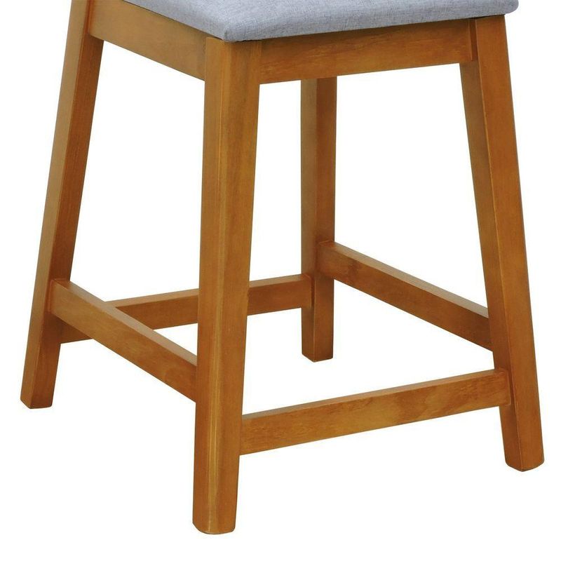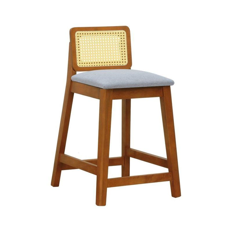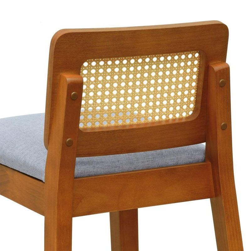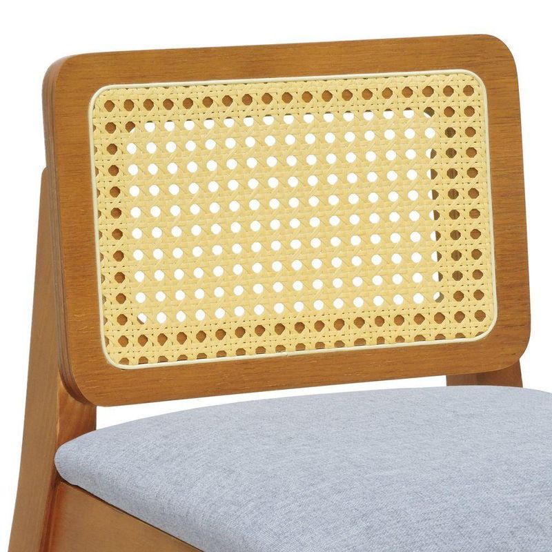 Banqueta Média Gabi Madeira Maciça Telinha Natural - Amêndoa Assento Estofado Linho Cinza Mescla Impermeável