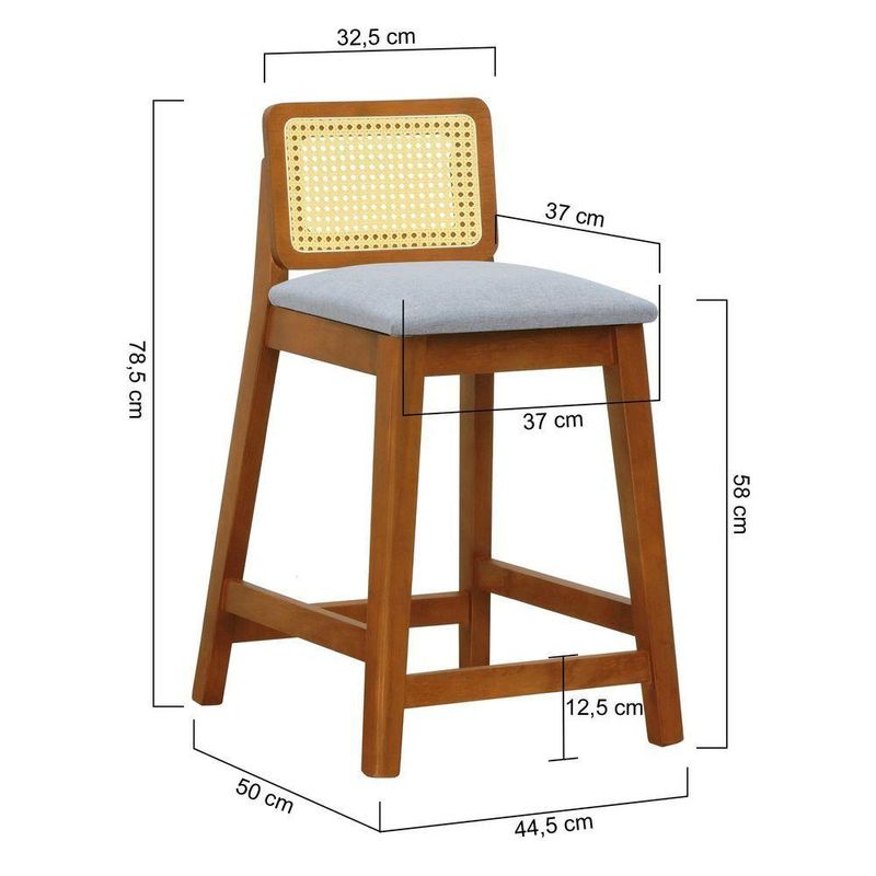 Banqueta Média Gabi Madeira MaciçaAs Banquetas Média Gabi são produzidas em madeira maciça, com encosto anatômico e aplicação de telinha sextavada, assento estofado que o torna em um produto único, com um design moderno, deixando sua casa cada vez mais bonita! ;São recomendadas para bancadas com no mínimo 85cm, altura livre do chão até o início da bancada. Deixando sua cozinha, área gourmet, mais aconchegante e bela!Outras Informações:- Na limpeza não utilizar produtos químicos e abrasivos, usar apenas um pano umedecido para garantir a maior durabilidade do móvel;
