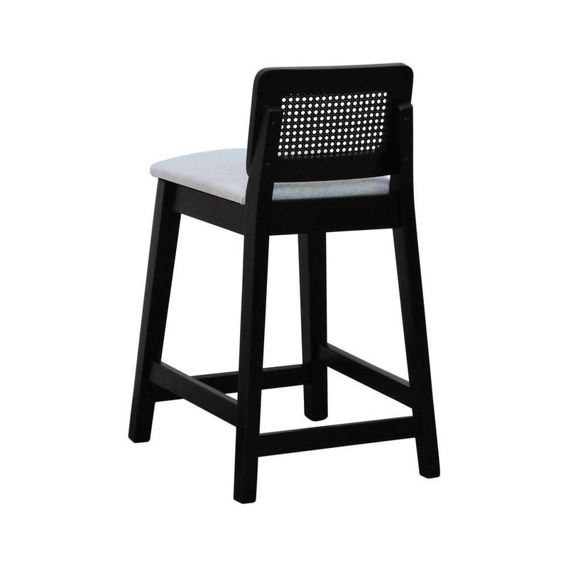 Banqueta Média Gabi Madeira Maciça Telinha - Preto Assento Estofado Linho Bege Mescla Impermeável